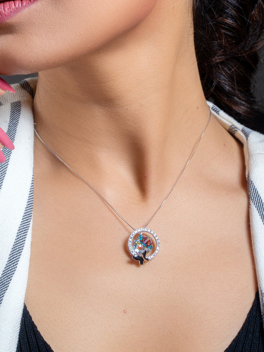 Rainbow Cube Swarovski Crystal With Halo Pendant