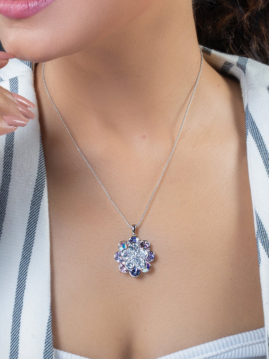 Shades Of Purple Swarovski Crystals In Rotating Flower Pendant