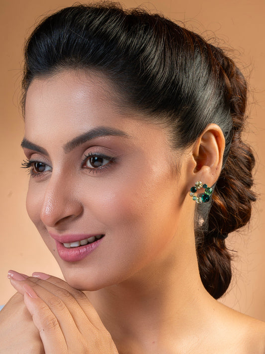 Shades Of Green Swarovski C Shape Crystal Earrings