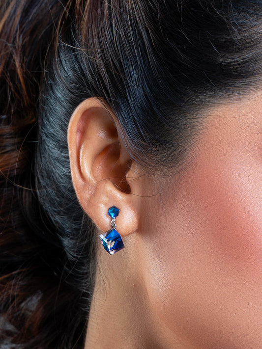 White & Blue Illusion Cube Swarovski Crystal Earrings