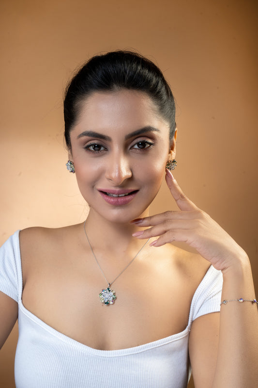 Shades Of Green Swarovski Crystals In Rotating Flowers Pendant