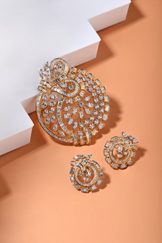 Stylish Pearl And Swarovski Crystal Pendant Set