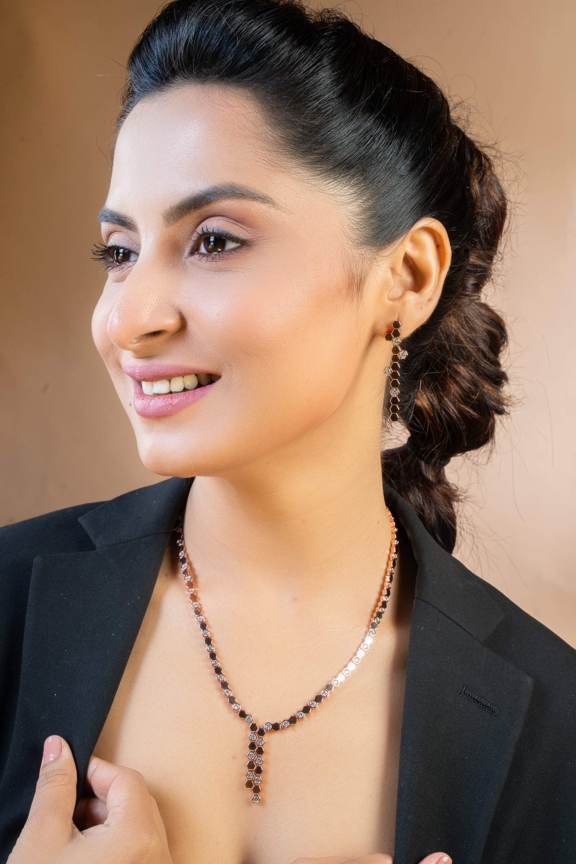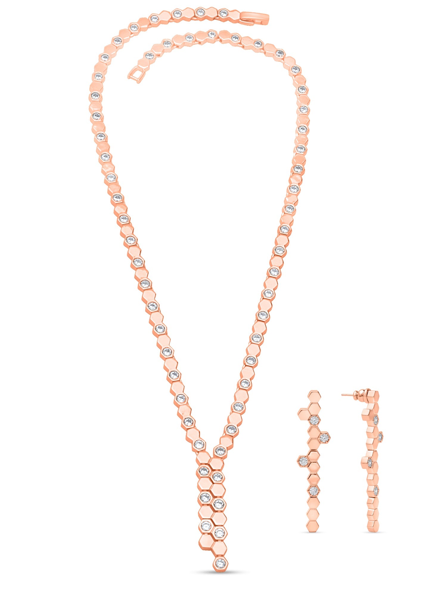 Hexa Charm Twin Drop Flexible Necklace Set - Rose Gold