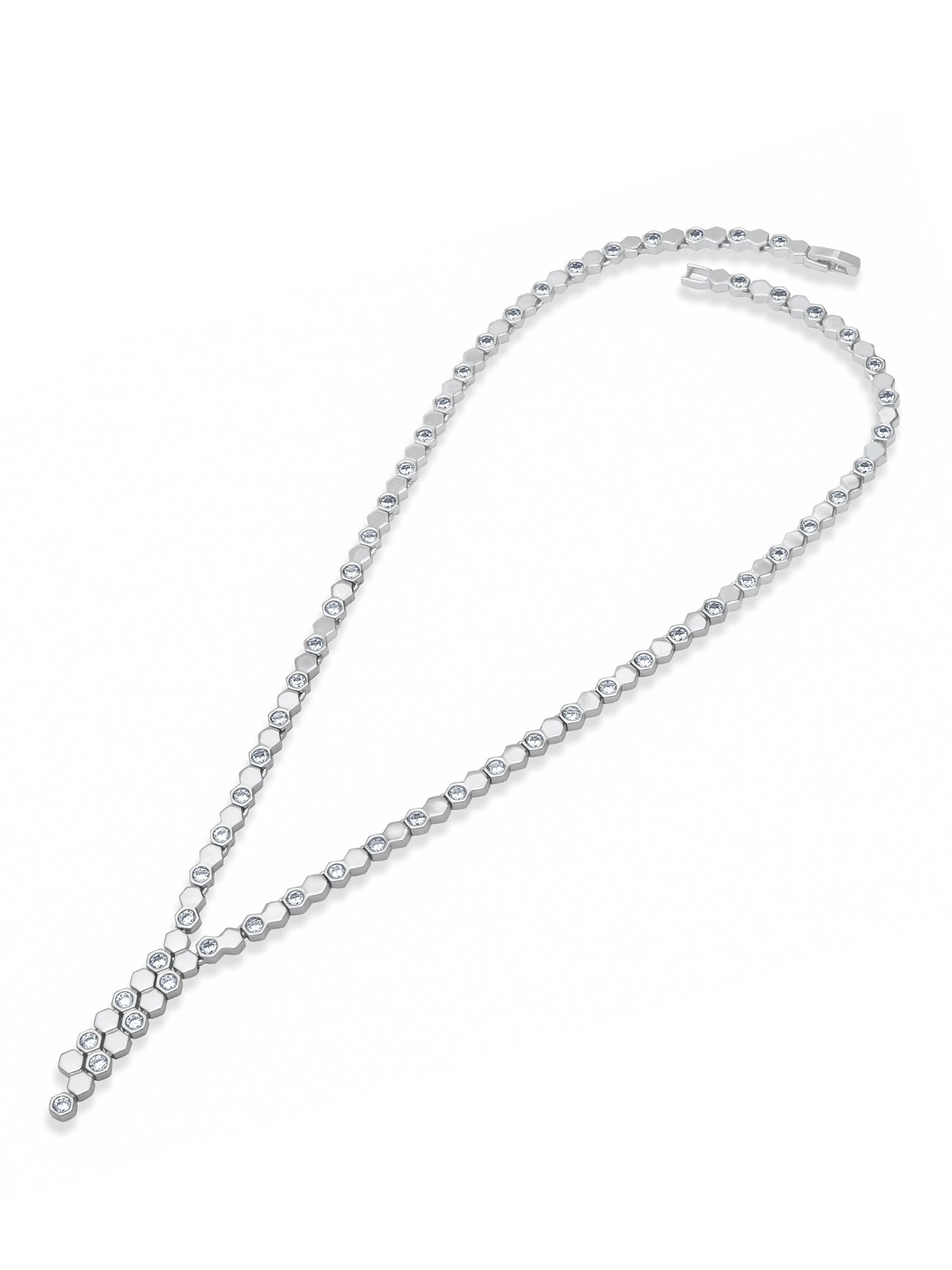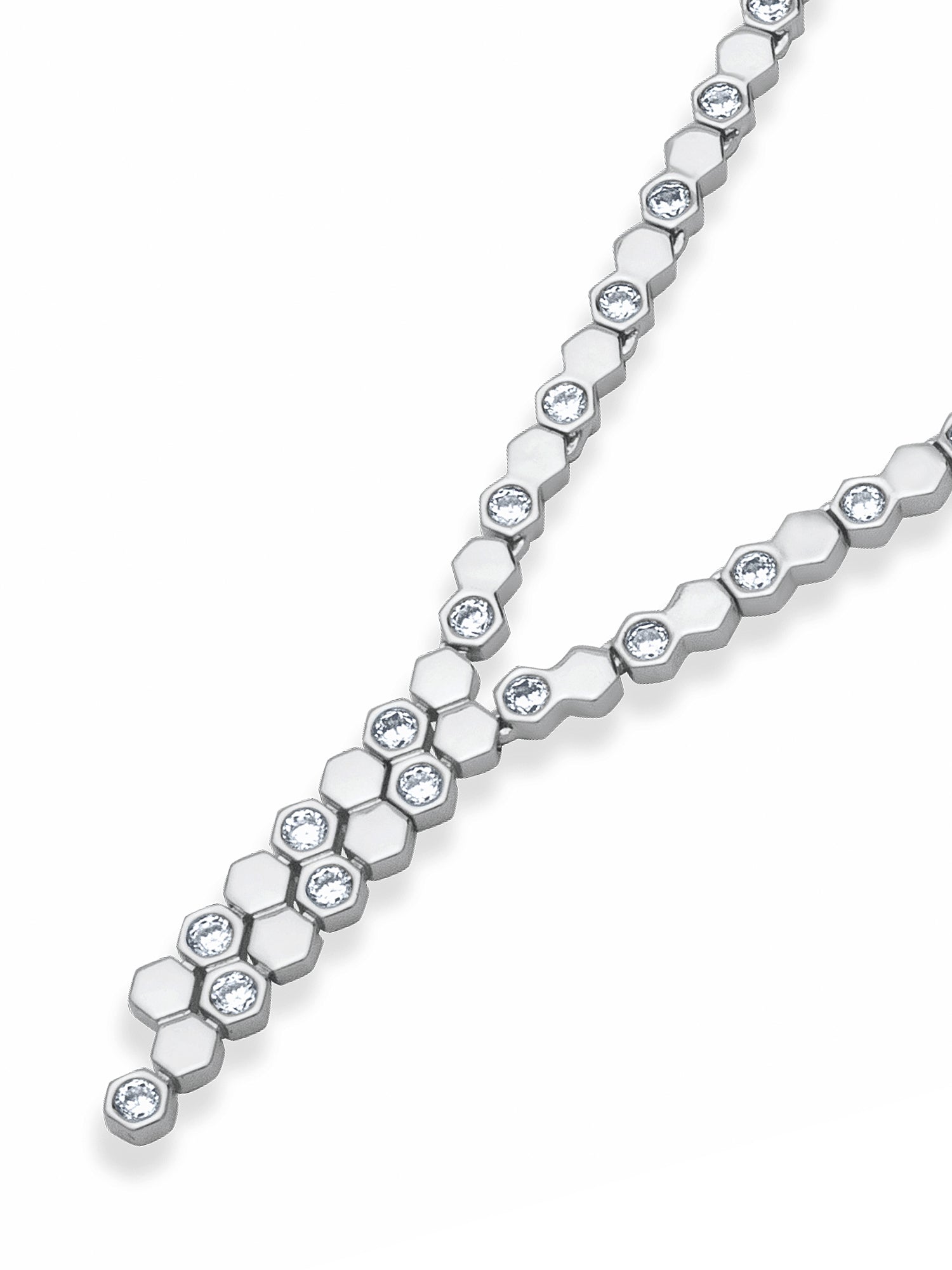 Crafted in radiant gold-tone plating in silver finish, this demi-fine necklace captures the beauty of nature with a modern edge. The geometric honeycomb design adds a touch of elegance and sophistication, making it perfect for both everyday wear and special occasions. Lightweight yet luxurious, it’s a versatile piece that blends timeless charm with contemporary style.